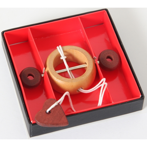 Puzzlegröße: 10 x 6 x 2 cm. In Geschenkbox. Clevere Denksportaufgabe für Klein und Groß. Es gilt, die Herzen zu vereinen oder vom Rest zu trennen. Ab 8 Jahren. Achtung! Nicht geeignet für Kinder unter 36 Monaten.