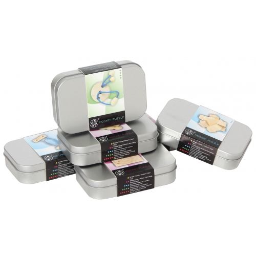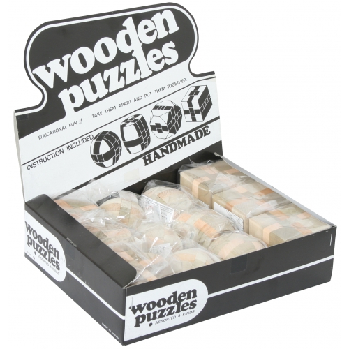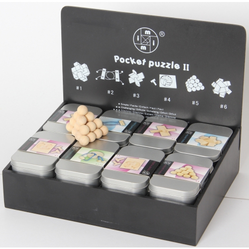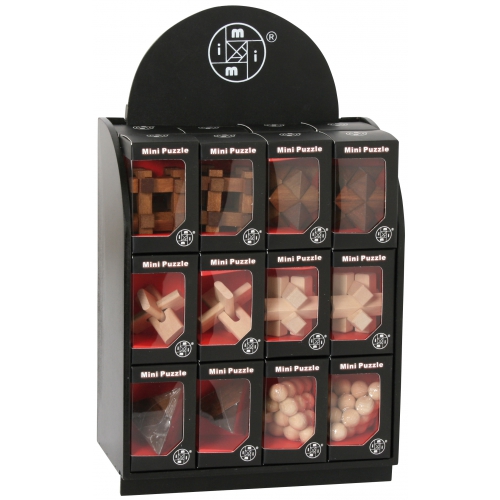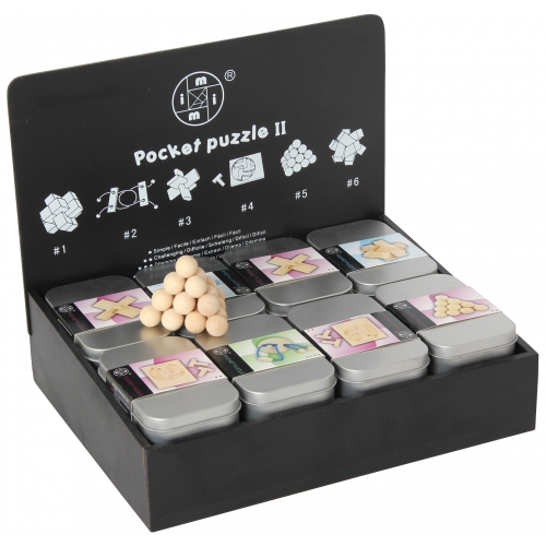 Inhalt: Zwölf Metallpuzzles in sechs Motiven im Holzdisplay - Ringkette, Nagelschlingen, Partner, Hakennägel, Triangel, M & W. Siehe Art.-Nr. 101135, 101136, 101137, 101141, 101142 und 101143! Maße: je 12 x 7 x 2 cm. Jeweils in Geschenkverpackung. Aufgabe der Metall-Puzzles ist es, jeweils die Nägel voneinander zu trennen. Ab 8 Jahren. Achtung! Nicht geeignet für Kinder unter 36 Monaten.