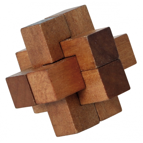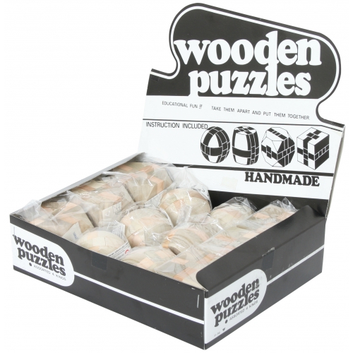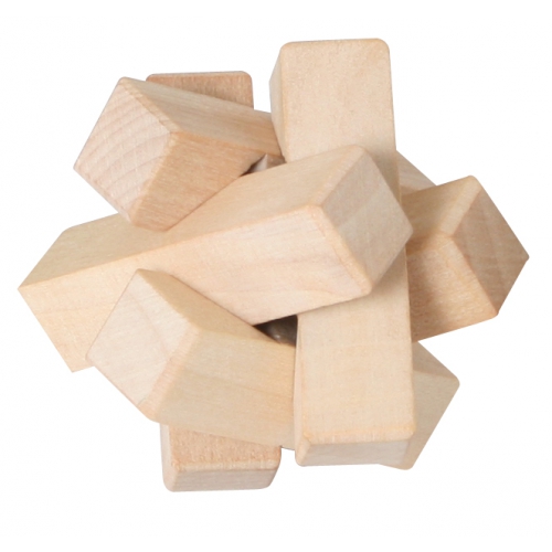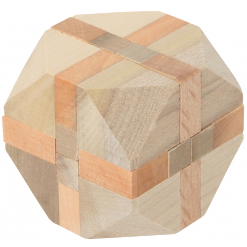Aus Holz. Puzzlegröße: 10 x 10 x 10 cm. In Geschenkverpackung. Ab 8 Jahren. a) Zerlegen und wieder zusammenbauen. b) Lassen Sie eine Holzkugel durch das Labyrinth im Innern rollen und durch das große Loch wieder herauskommen. Achtung! Nicht geeignet für Kinder unter 36 Monaten.