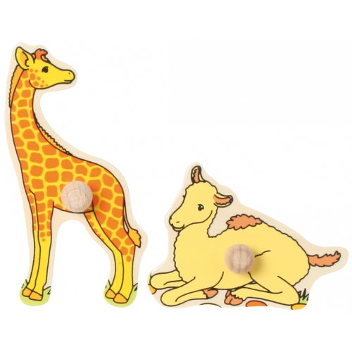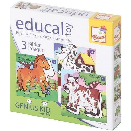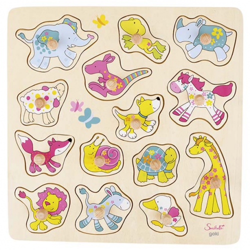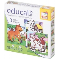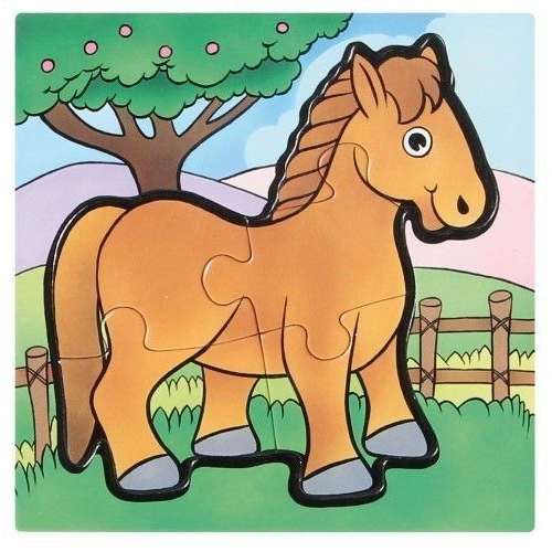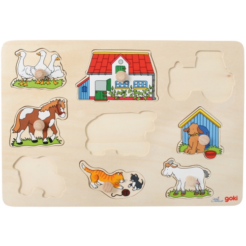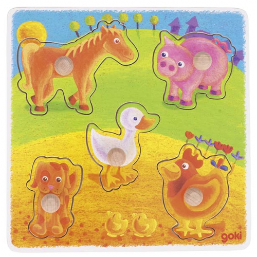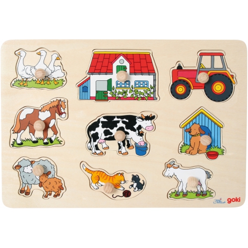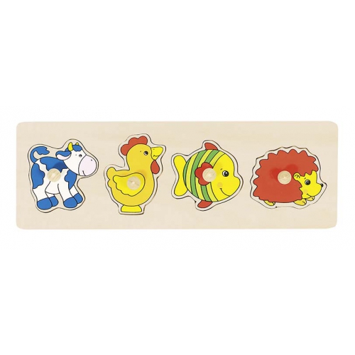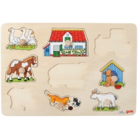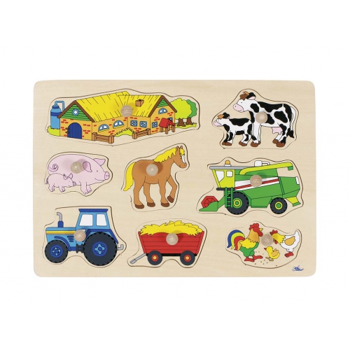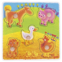 Süßes Holzpuzzle für die Jüngsten. Beim Spiel lernen sie die Tiere vom Bauernhof kennen. Jedes Puzzleteil hat einen praktischen Halteknopf. Ab 2 Jahren. Achtung! Nicht geeignet für Kinder unter 36 Monaten.