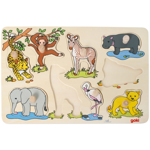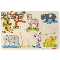 Vier klassische Bildpuzzles in unterschiedlichen Schwierigkeitsgraden aus stabilem Karton. Puzzle Katze aus 6 Teilen, Puzzle Hund aus 8 Teilen, Puzzle Papagei aus 10 Teilen und Puzzle Hase aus 12 Teilen. Größe je fertigem Puzzle: 17,4x17,4cm. Achtung! Nicht geeignet für Kinder unter 36 Monaten.