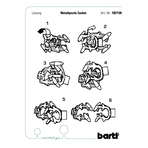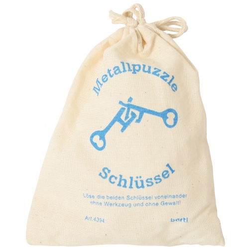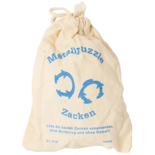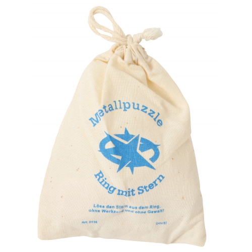 Im Baumwoll-Säckchen. Aufgabe des hochwertigen Metallpuzzles ist es, die Teile voneinander zu trennen und wieder zusammen zu setzen. Achtung! Nicht geeignet für Kinder unter 36 Monaten.