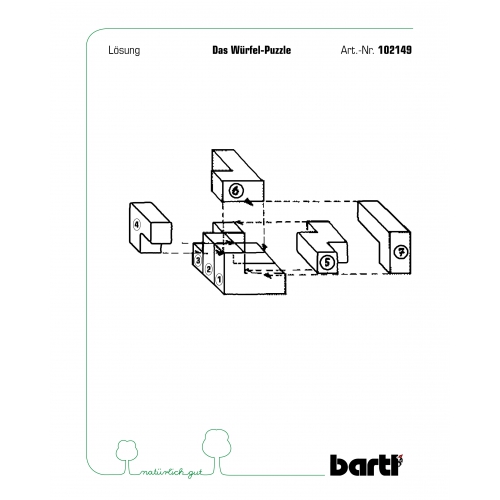 Aus neun Spielsteinen einen Würfel zu bauen, scheint einfach! Doch jeder Stein ist anders bepunktet. Tipp: Die gegenüberliegenden Seiten ergeben immer die Summe 7! Achtung! Nicht geeignet für Kinder unter 36 Monaten.
