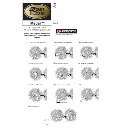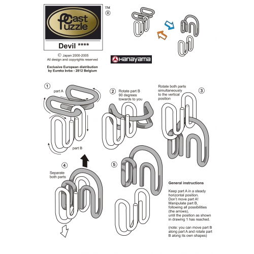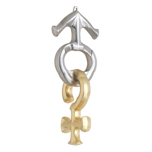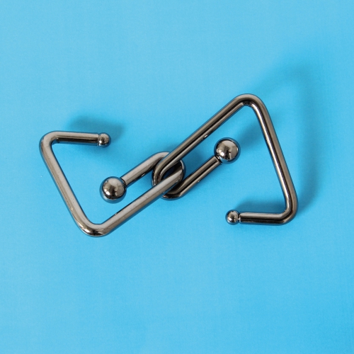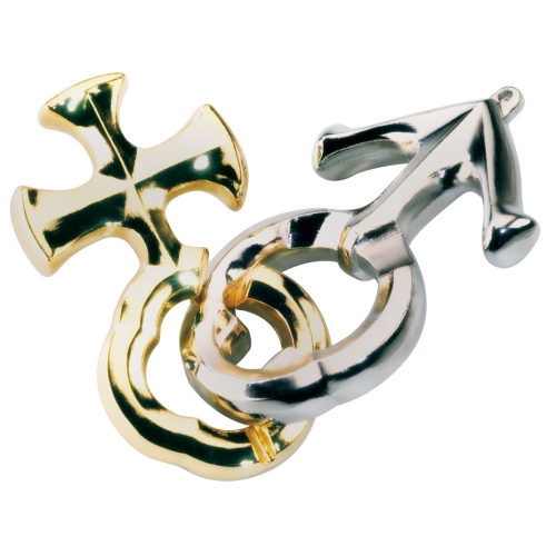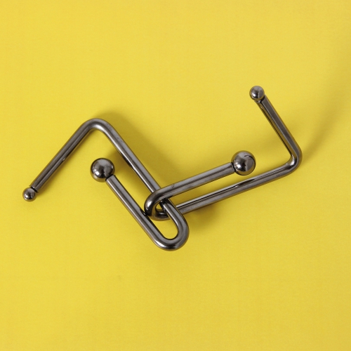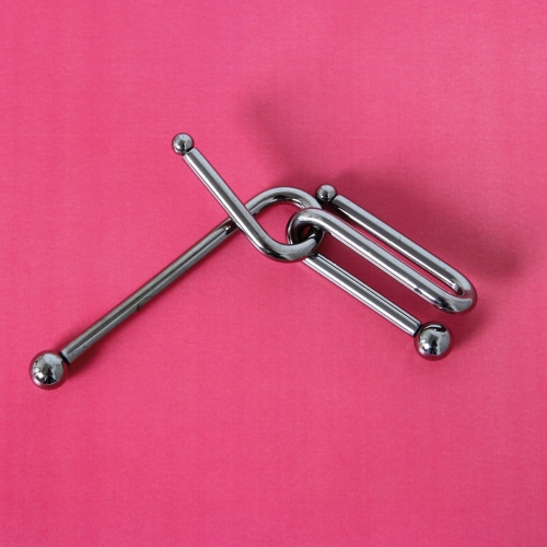 Aufgabe des verzwickten Metallpuzzles ist es, die Teile voneinander zu lösen und wieder zusammenzufügen. Schwierigkeitsgrad 4 von 6. Achtung! Nicht geeignet für Kinder unter 36 Monaten.