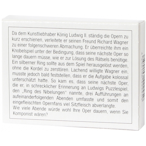 König Ludwig II. inspirierte mit diesem Puzzle Richard Wagner zur Oper Ring des Nibelungen. Dauert Ihr Lösungsversuch auch so lang wie die Oper? Achtung! Nicht geeignet für Kinder unter 36 Monaten.