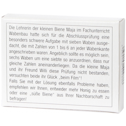 Zwei Puzzles in einem! Das Geduldspiel präsentiert auf beiden Seiten je ein kniffliges Kugellabyrinth. Verschiedene Designs sortiert. Achtung! Nicht geeignet für Kinder unter 36 Monaten.