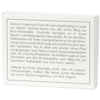 So puzzelt ein Fußballer aus 13 Teilen einen Stürmer: Erst spielt er alle ins Abseits. Dann entwickelt er eine Strategie: Hmm, das platziere ich linksaußen ... Nach 90 Minuten ballert er das Puzzle ins Eck, schimpft über den Schiri und genehmigt sich ein Bierchen im Vereinsheim, denn ein guter Fußballer feiert auch eine Niederlage. Achtung! Nicht geeignet für Kinder unter 36 Monaten.