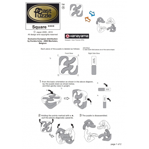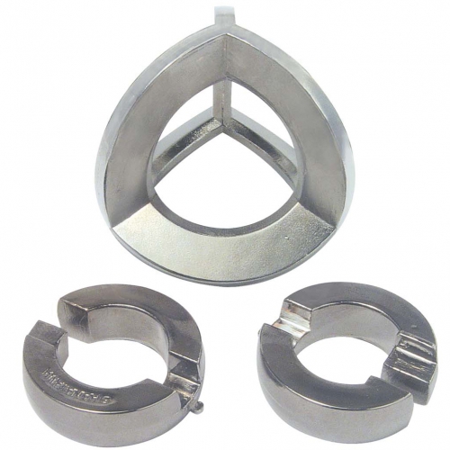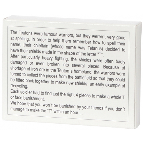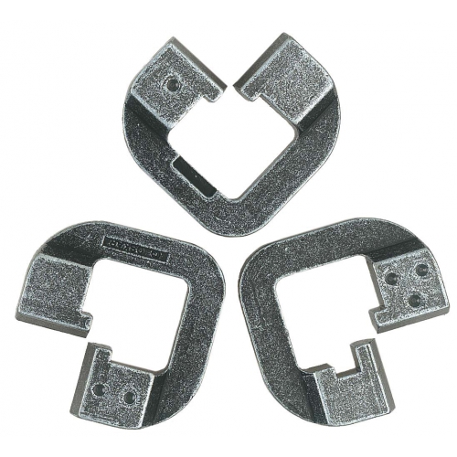 Die Silver-Edition. Aufgabe des verzwickten Metallpuzzles ist es, die Teile voneinander zu lösen und wieder zusammenzufügen. Maße: 7 x 6,5 x 1 cm. Schwierigkeitsgrad: 4 Der Name Cast Puzzle kommt aus dem Englischen von to cast = Metall gießen. Die Cast Puzzles werden aus Gießzink gegossen. Achtung! Nicht geeignet für Kinder unter 36 Monaten.