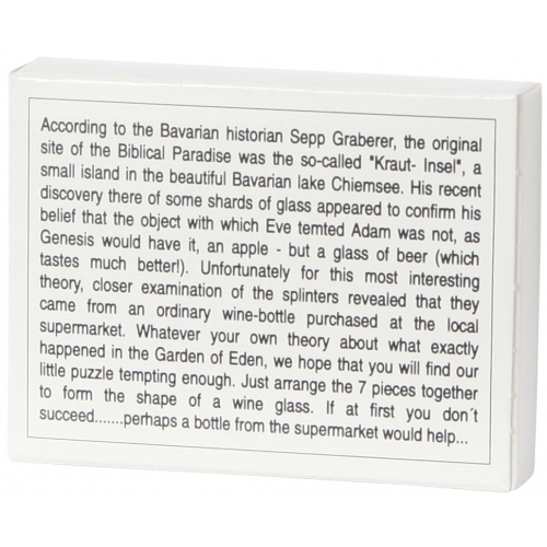 Der Heimatforscher Sepp Graberer fand auf der Krautinsel im Chiemsee, seinen Forschungsergebnissen nach, das ehemalige Paradies, ein zerbrochenes Weinglas. Sind Adam und Eva nicht vom Apfel, sondern vom Wein verführt worden? Sieben Teile. Achtung! Nicht geeignet für Kinder unter 36 Monaten.