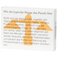 Artikel-Nr: 375108440Intelligente Version des Farben-Sudokus für Puzzler ab 6 Jahren. 27 farbige Holzwürfelchen bilden, mit Gummizug verbunden, eine Kette. Diese wird, richtig zusammengesetzt, zum Sudoku-Würfel. Dabei darf jede Farbe nur einmal auf jeder Seite des Würfels vorkommen. Achtung! Nicht geeignet für Kinder unter 36 Monaten.