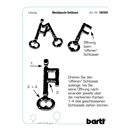 Höhe: 13 cm. In Geschenkkarton. Ab 8 Jahren. Aufgabe des kniffligen Metallpuzzles ist es, einen Teil vom Rest zu trennen. Und wenn Sie das nicht schaffen, dann haben Sie wenigstens einen schönen Dekogegenstand. Achtung! Nicht geeignet für Kinder unter 36 Monaten.