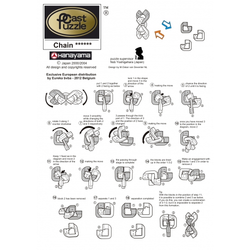 Kniffliges 3-D-Puzzle in exklusivem Design! Das Puzzle besteht aus 32 beweglichen Teilen. Diese kann man in alle Richtungen hin- und her bewegen. Ziel des Geduldspieles ist es, die Teile in eine bestimmte Position zu bringen, verschiedene Aufgaben zu lösen, eigene Tricks auszuprobieren ... Ihrer Phantasie sind keine Grenzen gesetzt! Achtung! Nicht geeignet für Kinder unter 36 Monaten.