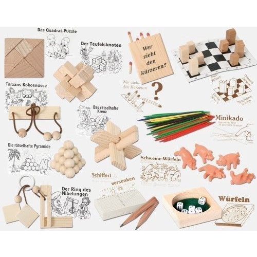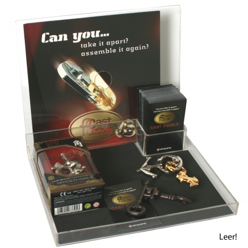 Inhalt: 48 Metallpuzzles in acht Motiven im Holzdisplay. Puzzlelänge: 6 - 15 cm. Jedes Puzzle in Geschenkbox. Achtung! Nicht geeignet für Kinder unter 36 Monaten.