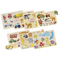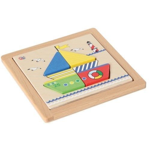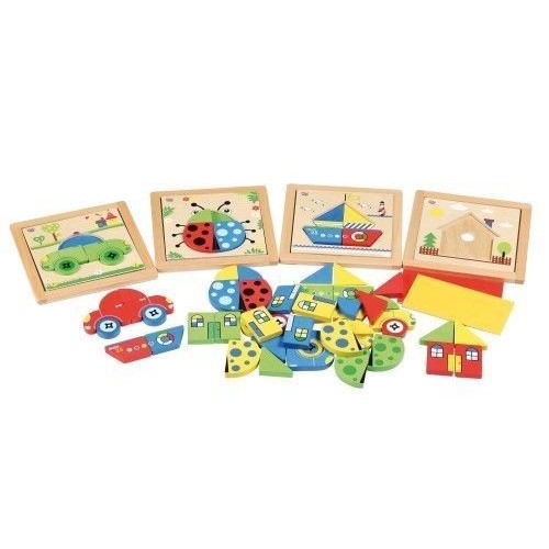 Inhalt: 4 Spielbretter, 4 Spielrahmen, 4 zweiteilige Hintergrundplatten, 56 Puzzleteile - hochwertige Ausführung - alles aus Buchenholz - mit Stoffbeutel. Größe / Spielbrett: 18 x 18 x 1,5 cm. Beim kreativen Spielen lernt man verschiedene Farben und Formen kennen, lernt Figuren in einen Rahmen einzupassen, trainiert seine Fingerfertigkeit, Vorstellungskraft und Kreativität. Hochwertige Ausführung aus Buchenholz! In Kindergartenqualität! Achtung! Nicht geeignet für Kinder unter 36 Monaten.