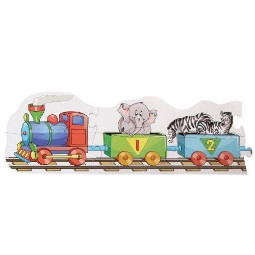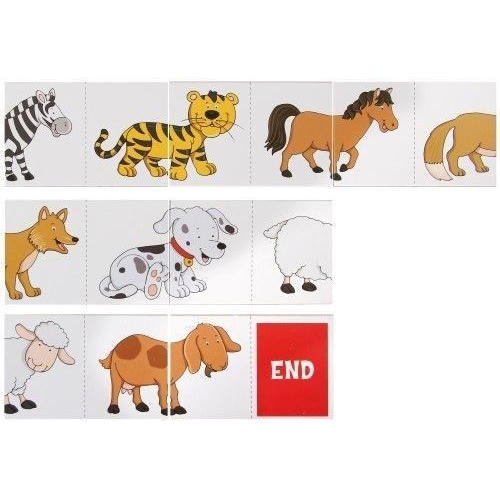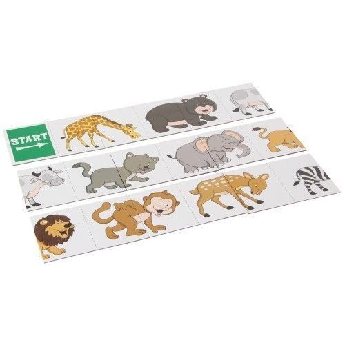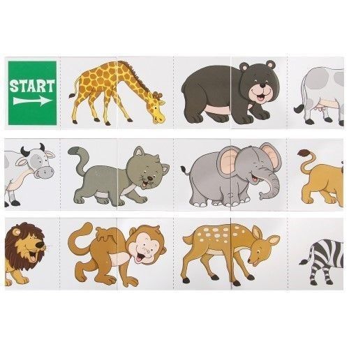 Stell die Tierkette zusammen! Legepuzzle aus 16 stabilen Kartonteilen mit vielen lustigen Tieren. Einzelteil: 11,7cm, Gesamtlänge 187cm! Achtung! Nicht geeignet für Kinder unter 36 Monaten.