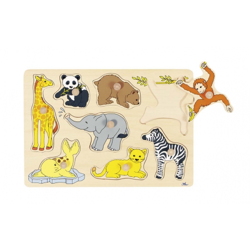 Aus sechs unterschiedlich gekleideten Mädchen lassen sich süße Bärchen zaubern. Die einfachen Holz-Puzzleteile sind ideal für kleine Kinder. Achtung! Nicht geeignet für Kinder unter 36 Monaten.