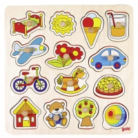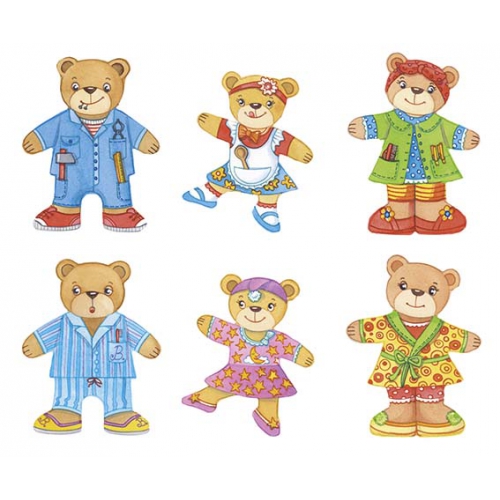 Aus sechs unterschiedlich gekleideten Buben lassen sich süße Bärchen zaubern. Die einfachen Holz-Puzzleteile sind ideal für kleine Kinder. Achtung! Nicht geeignet für Kinder unter 36 Monaten.
