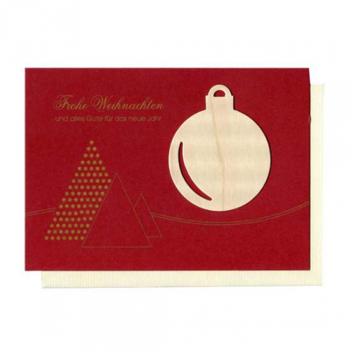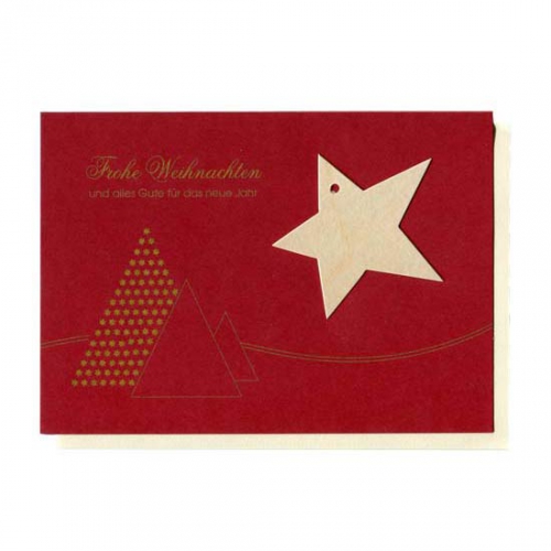 Wahlweise in rot, grün oder blau, goldfarbener Druck, mit Lesezeichen, aus Furnier, wahlweise mit Tannen, Sterne, Bethlehem oder Pinguine, goldfarbenen gedruckt