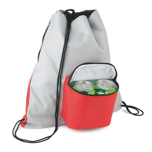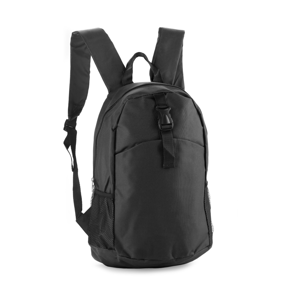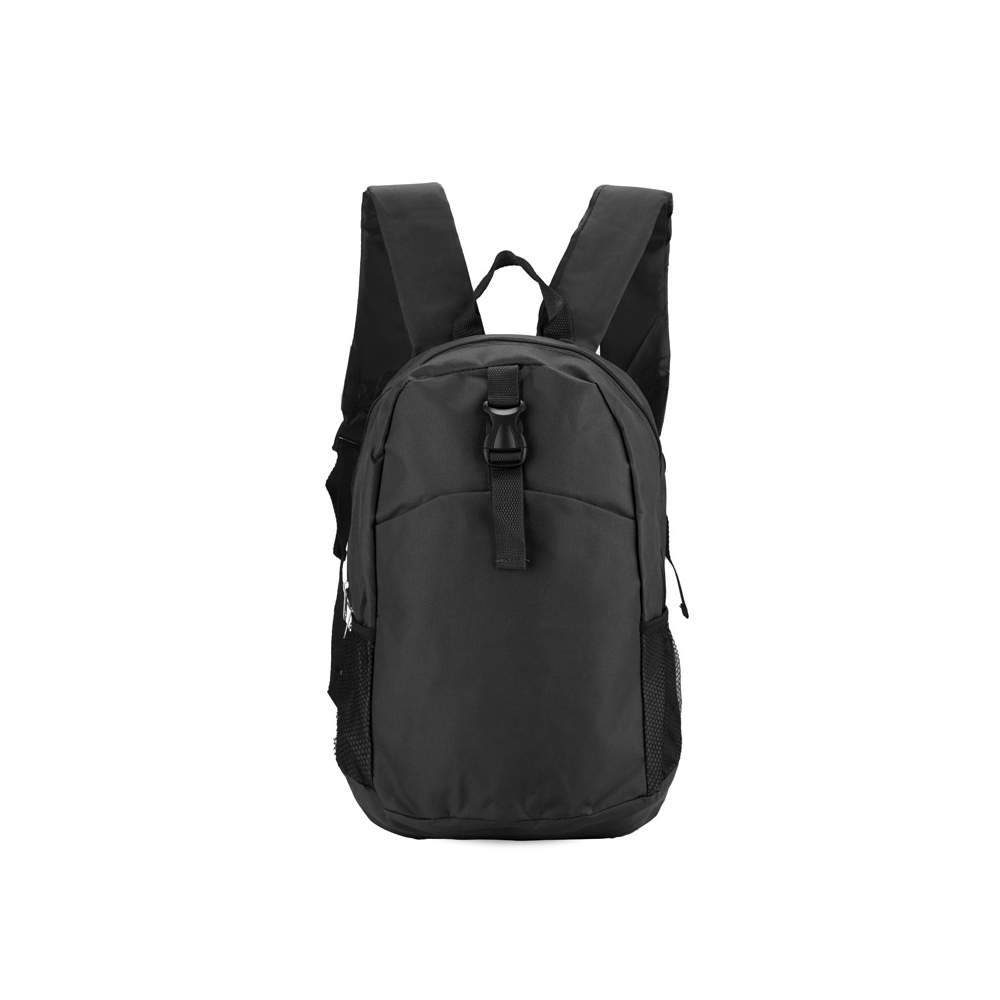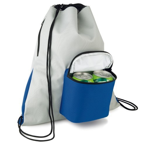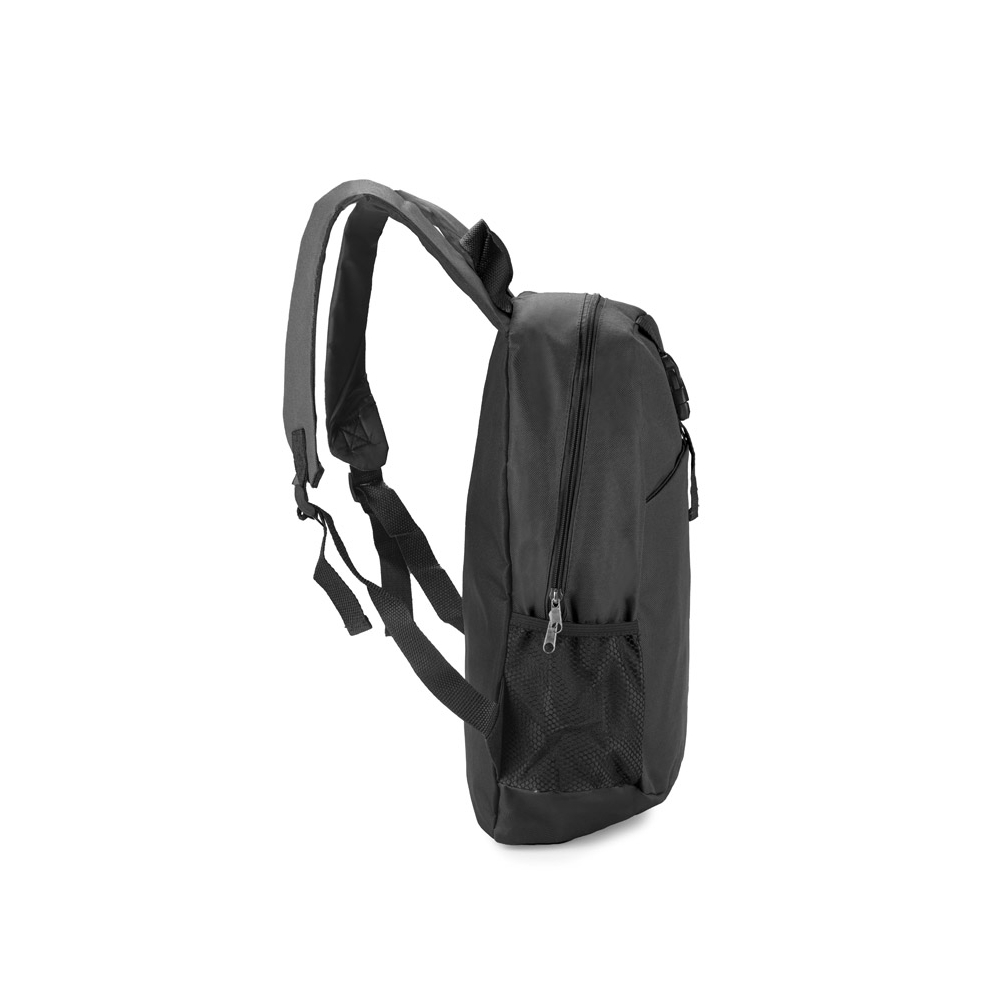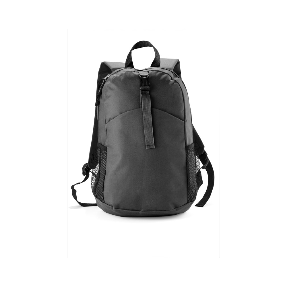 Artikel-Nr: OCBMO2491-15Rucksack mit Schnürung. Fronttasche mit Reißverschluss. Netztaschen auf beiden Seiten. 600D RPET-Polyester.