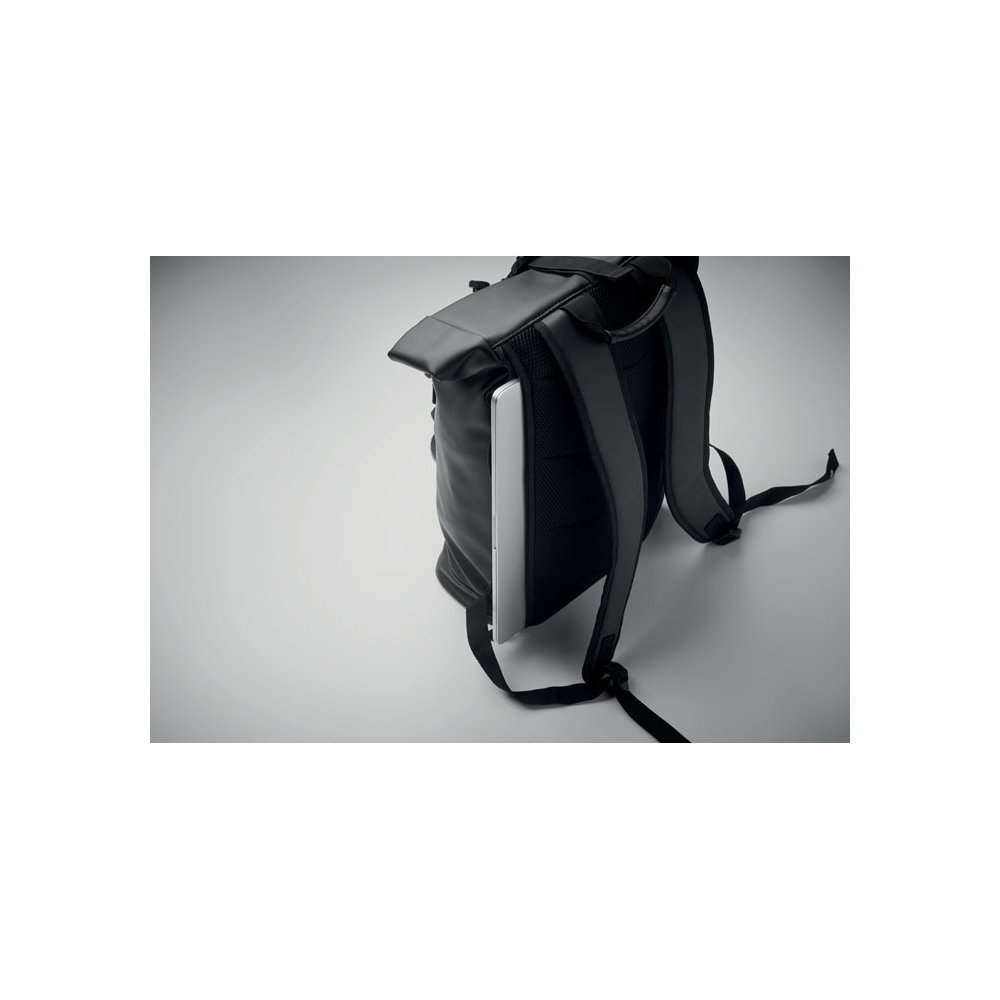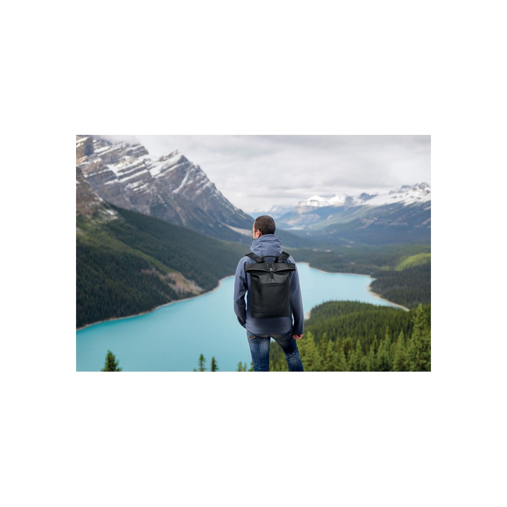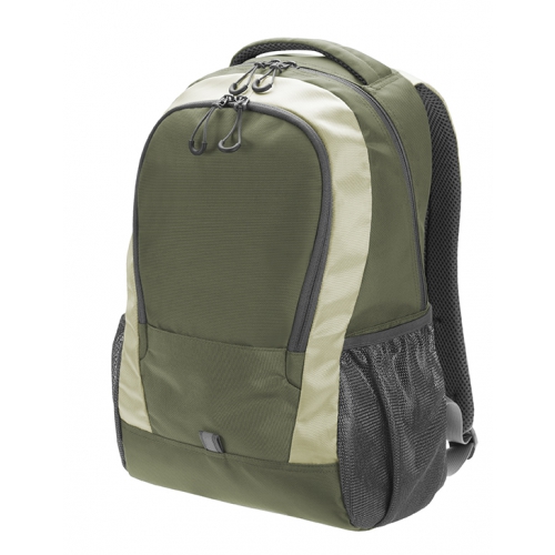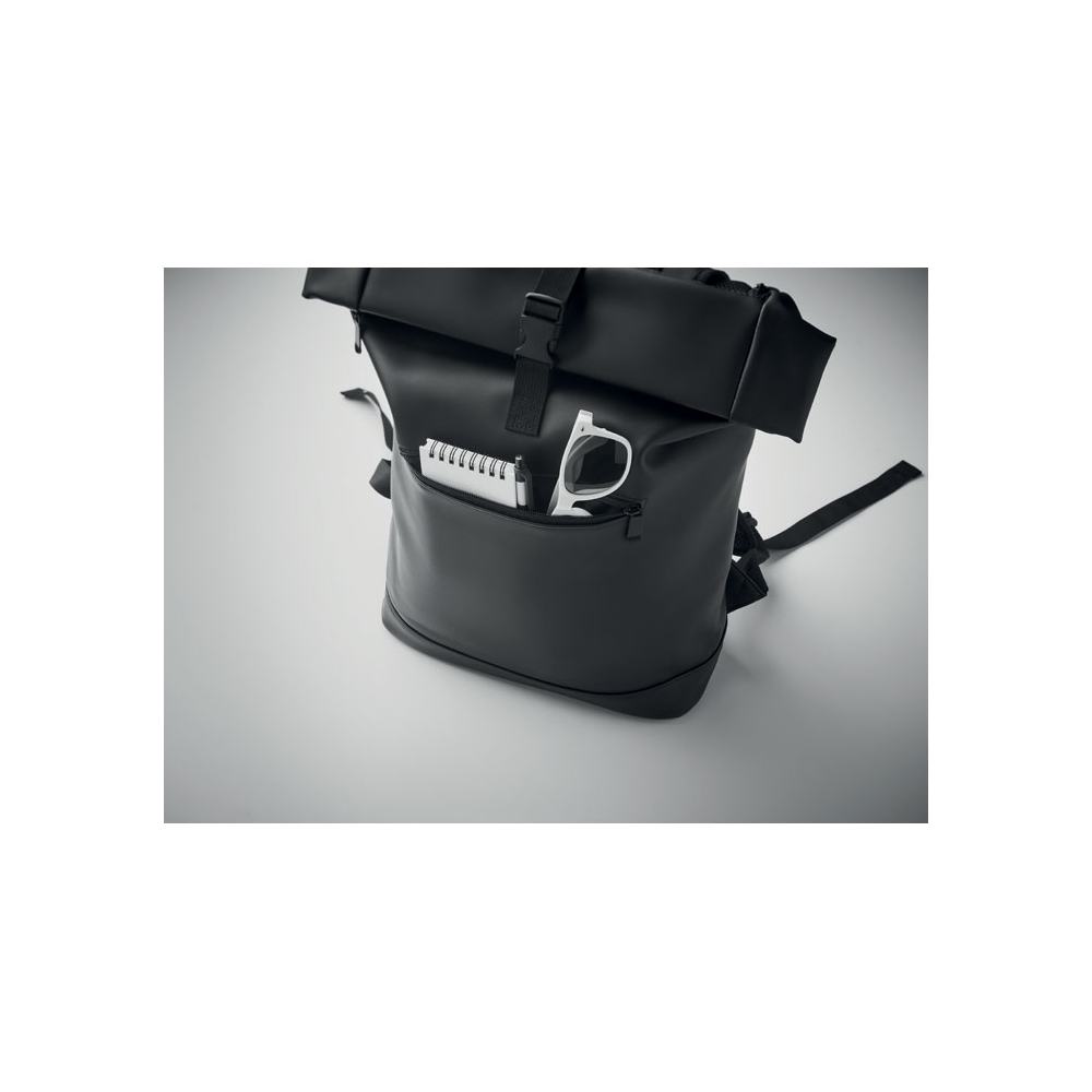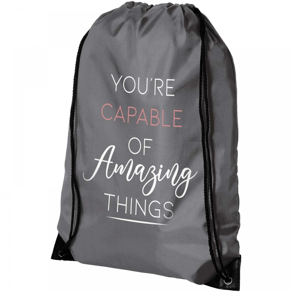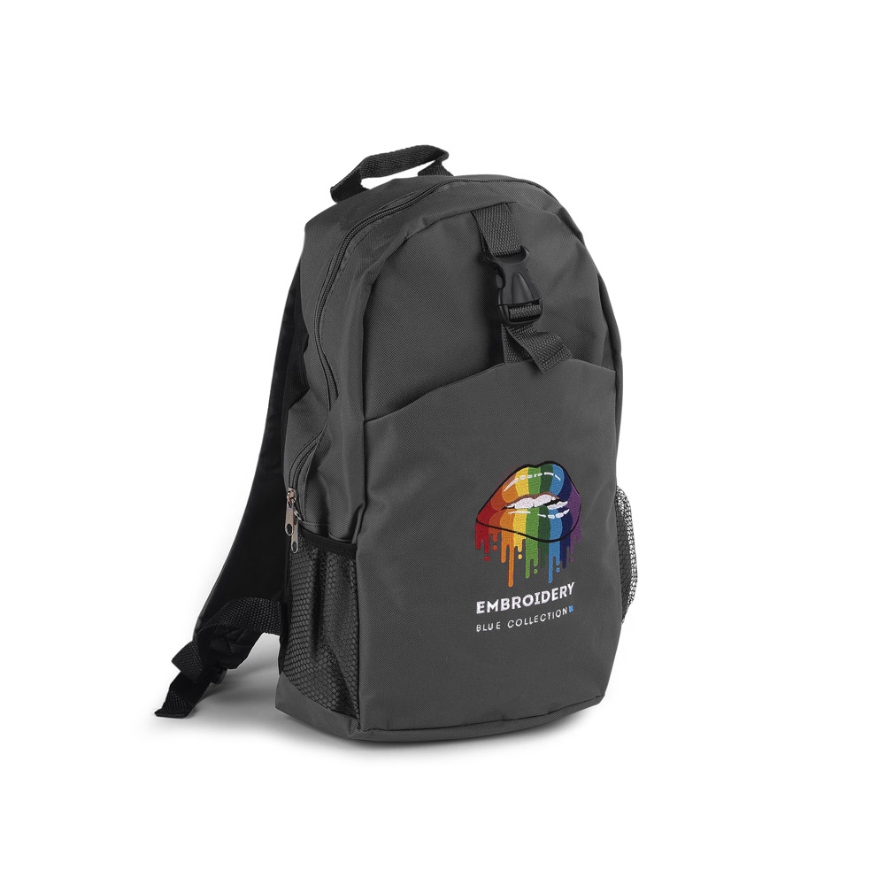 Artikel-Nr: OCBMO2491-15Rucksack mit Schnürung. Fronttasche mit Reißverschluss. Netztaschen auf beiden Seiten. 600D RPET-Polyester.