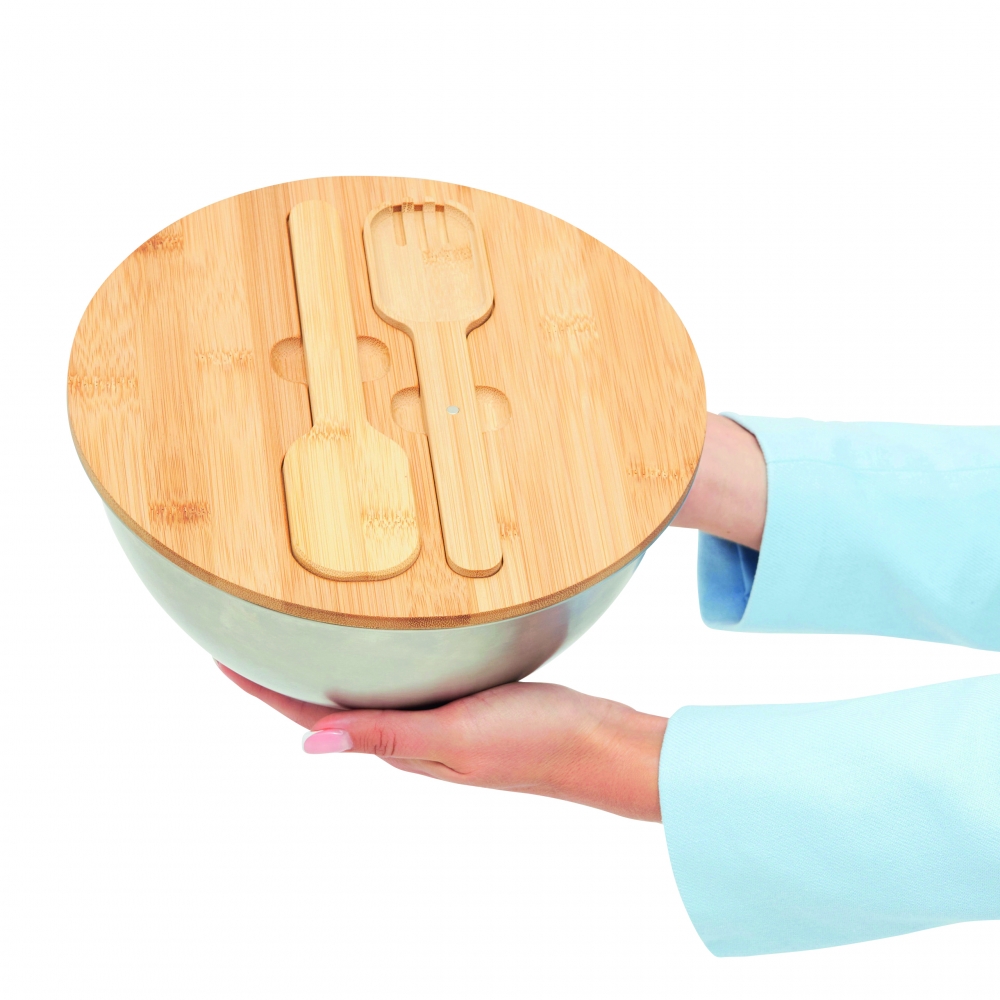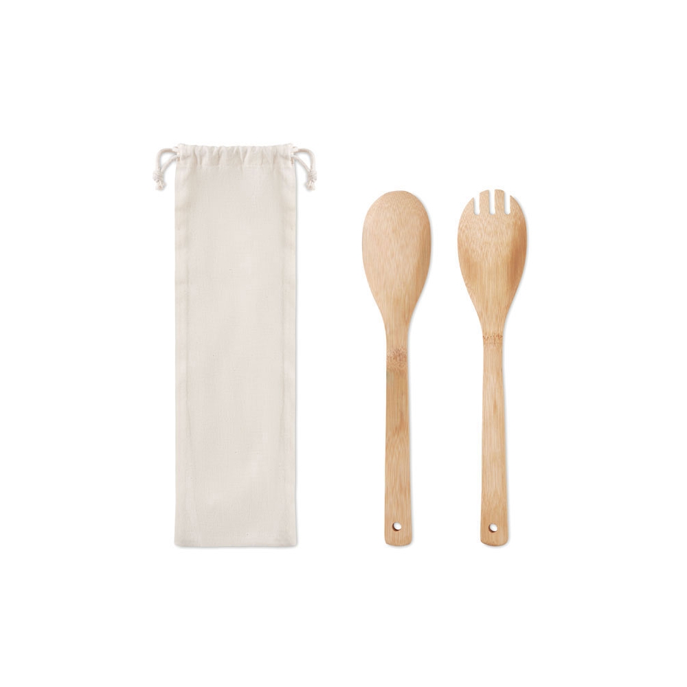 Salatbesteck aus Bambusholz. Da Bambus ein natürliches Material ist, kann der Farbton pro Artikel variieren. Nicht spülmaschinengeeignet. Bambus ist ein natürliches Produkt, es kann daher zu leichten Abweichungen in Farbe, Dekor und Maßen kommen.
