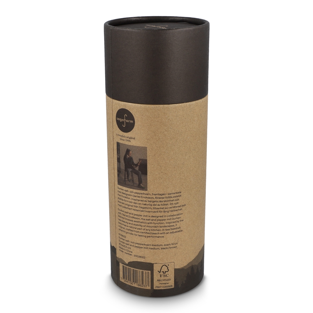 Artikel-Nr: ART52261N0002Die Sagaform Salz- oder Pfeffermühle "Gurken" medium aus Holz, die von Daniel Enoksson entworfen wurde. Inspiriert von Berglandschaften hat die Mühle eine konische Form mit einem zeitlosen Design. Sie besteht aus zertifiziertem Buchenholz und verfügt über einen einstellbaren Keramikmahlwerk. Höhe: 20,5 cm. Wird in einer luxuriösen Geschenkverpackung geliefert.