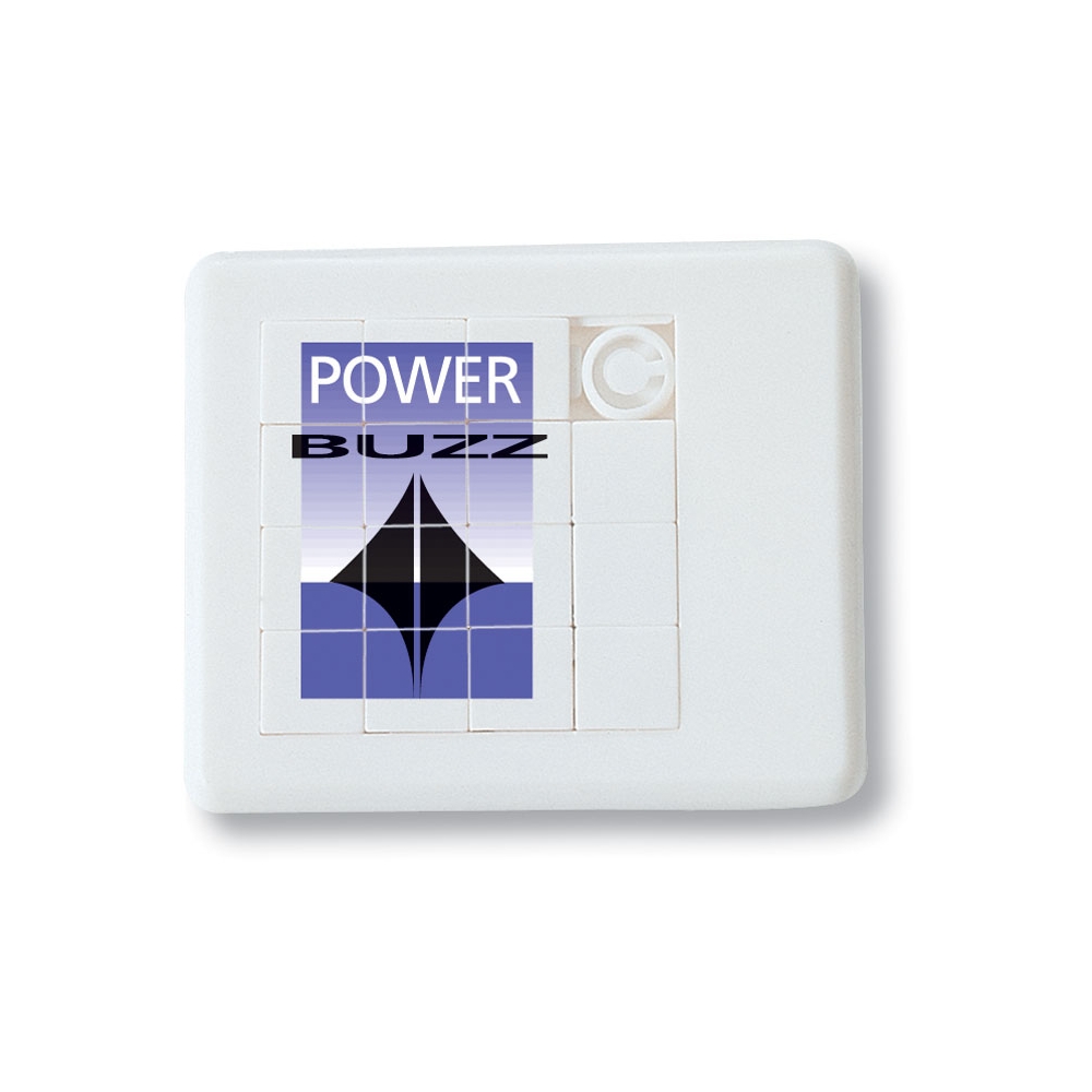 Artikel-Nr: ELT03462001-00000Kniffliges Schiebespiel mit 15 beweglichen Teilen und 1 Stopper. Individuell mit bis zu 4 Farben bedruckbar. Große und wirkungsvolle Werbefläche.