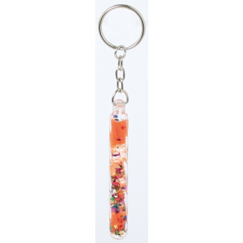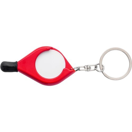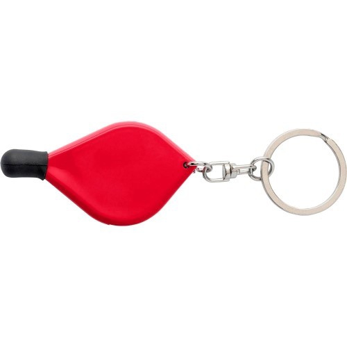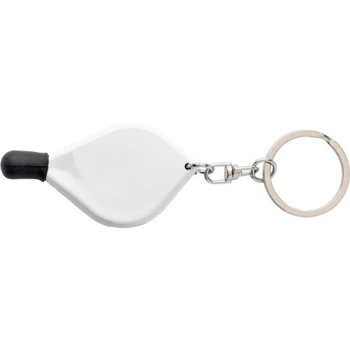 Schlüsselanhänger aus Kunststoff mit farbigem Band.