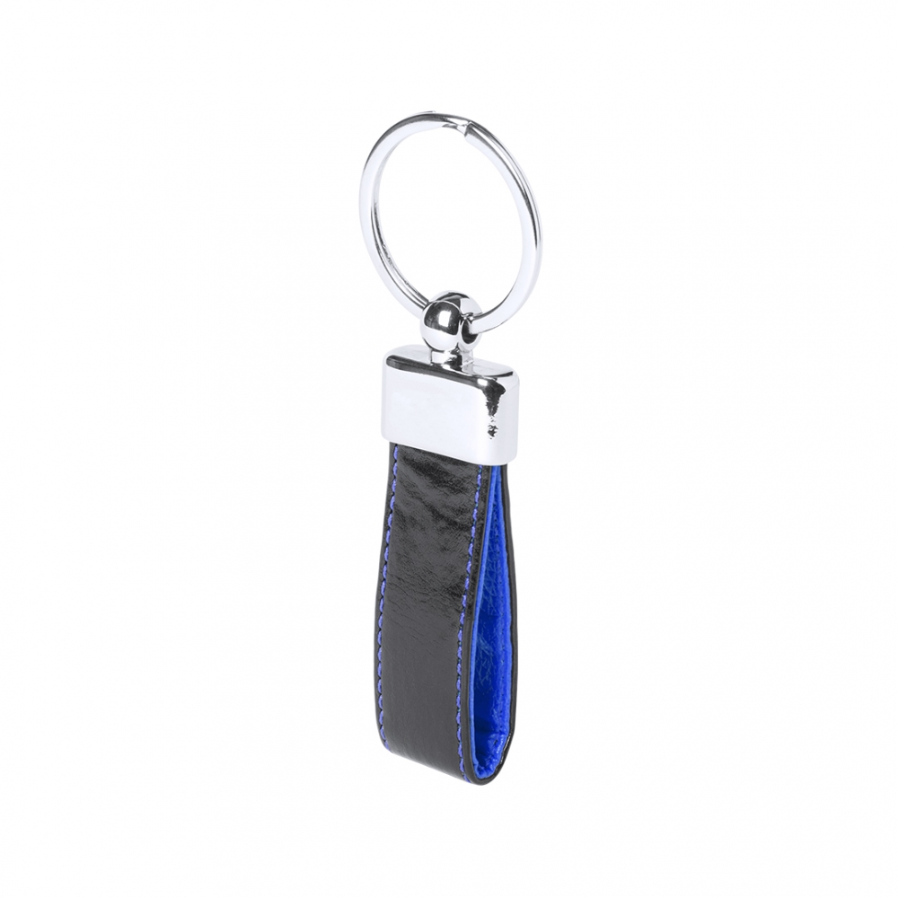 Schlüsselanhänger aus elegantem, zweifarbigem Kunstleder mit Metall-Detail. Präsentiert in einer individuellen Schachtel mit Stanzung im Inneren.