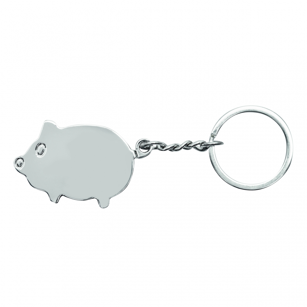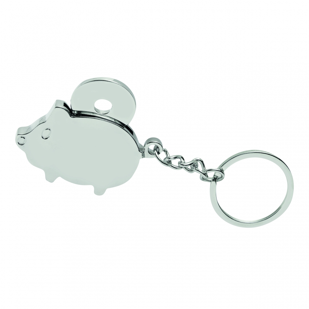 Metall-Schlüsselanhänger mit Einkaufswagen-Chip. Chip mit einer farbigen Seite und Einkaufswagen-Motiv auf der Rückseite. Chipgröße: ø23×1,7 mm.