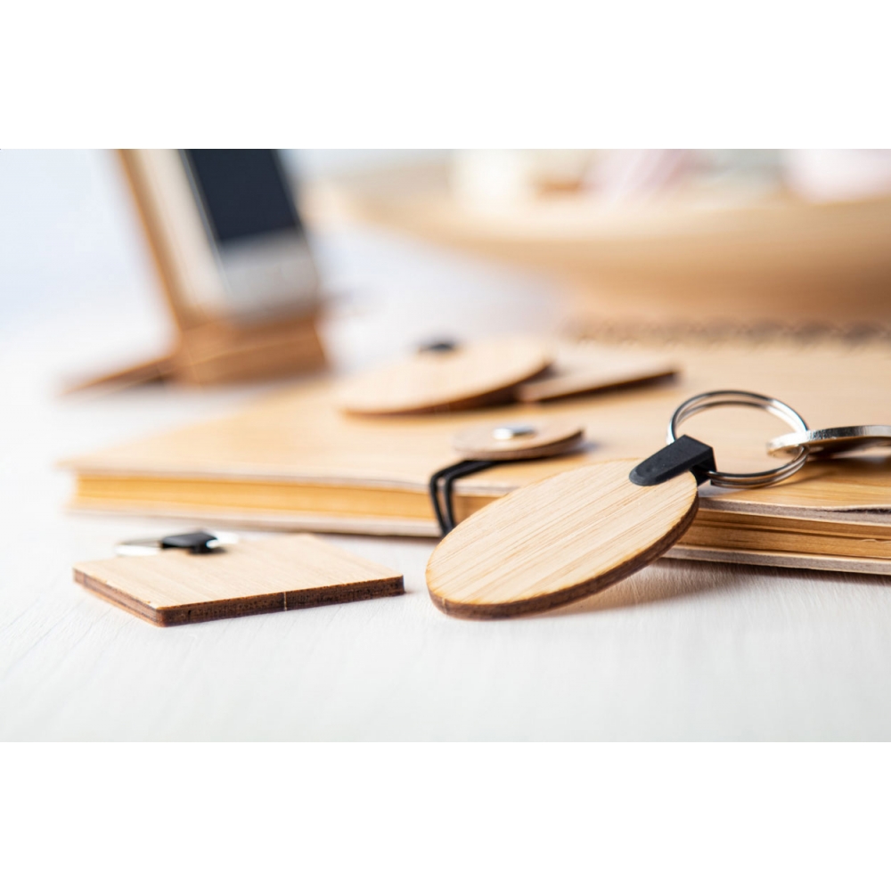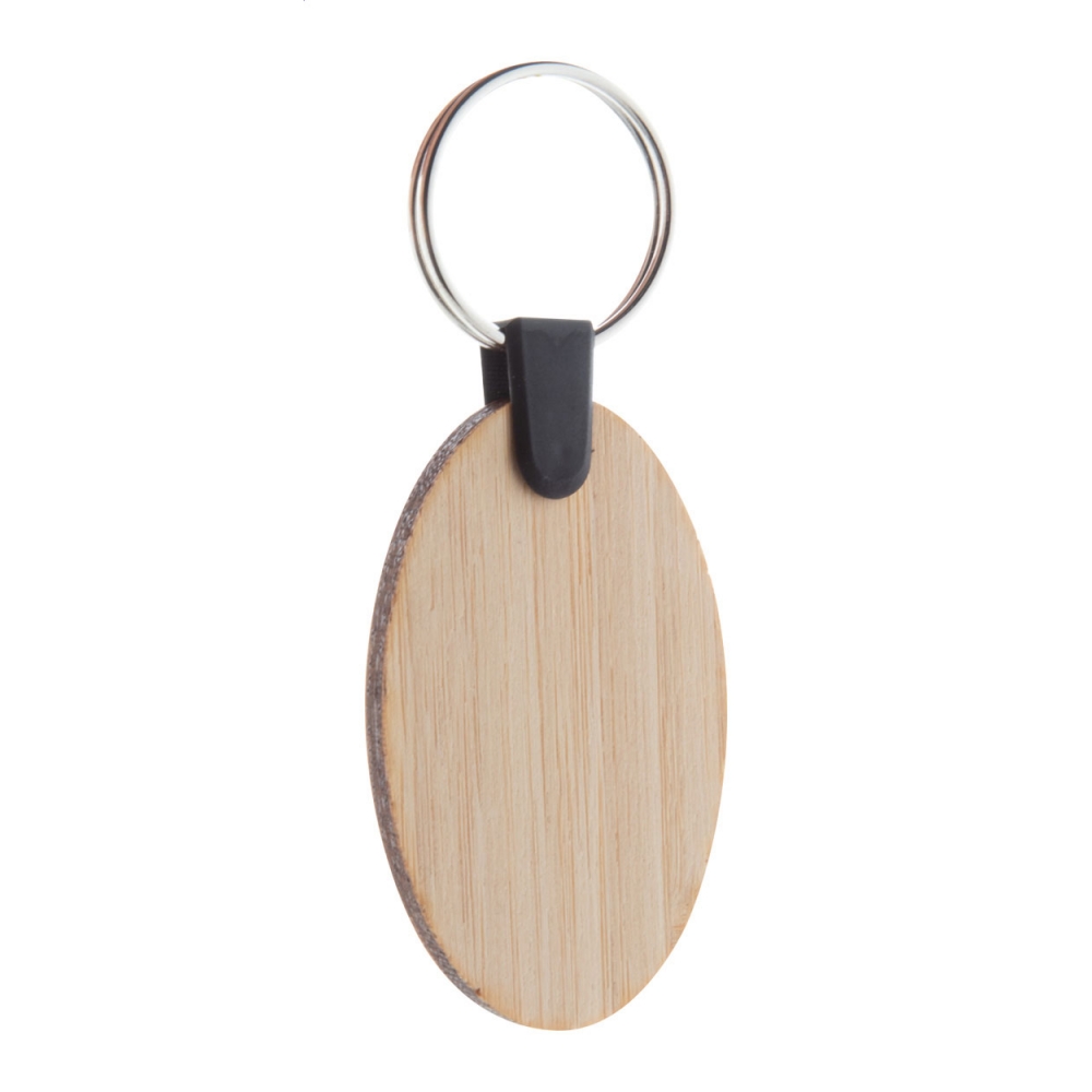 Schlüsselanhänger aus Bambus-Sperrholz mit Metall-Schlüsselring.