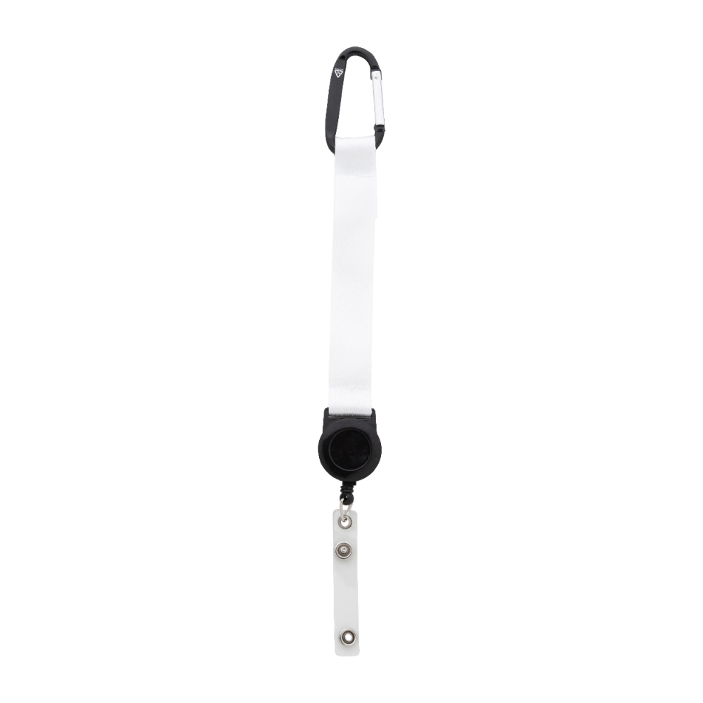 Roller-Clip Schlüsselanhänger aus RCS recyceltem ABS und Zinklegierung hergestellt. Idealer Artikel für Büro, Messe oder sogar beim Skifahren. Mit 60cm Kordel zur Befestigung des Ausweises. Mit Karabinerhaken zur Befestigung an Tasche oder Kleidung. Gesamter recycelter Inhalt: 34% basierend auf dem Gesamtgewicht des Artikels. Die RCS-Zertifizierung gewährleistet eine vollständig zertifizierte Lieferkette der recycelten Materialien. Verpackt in Papiertüte
