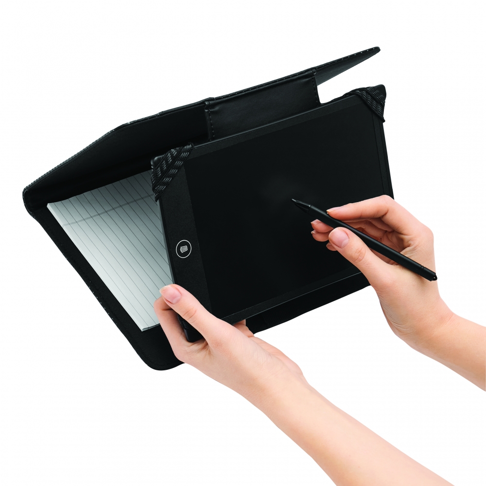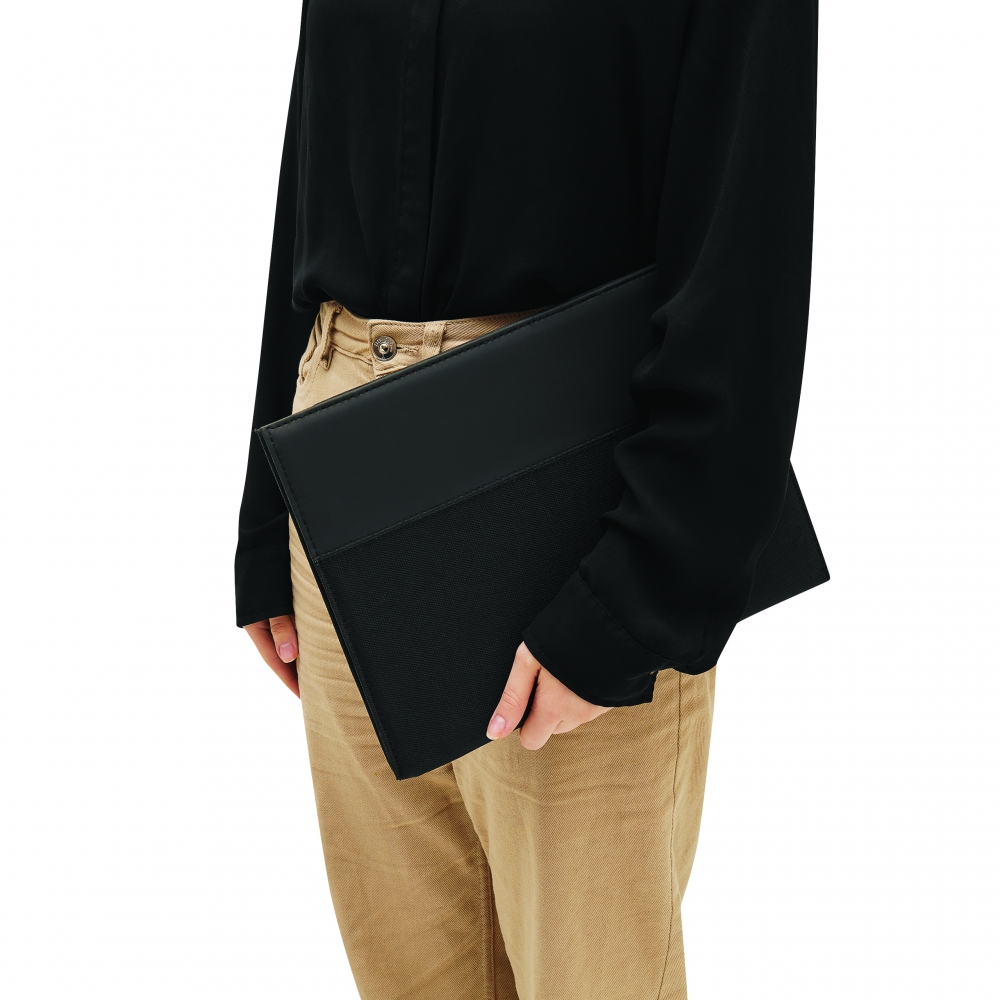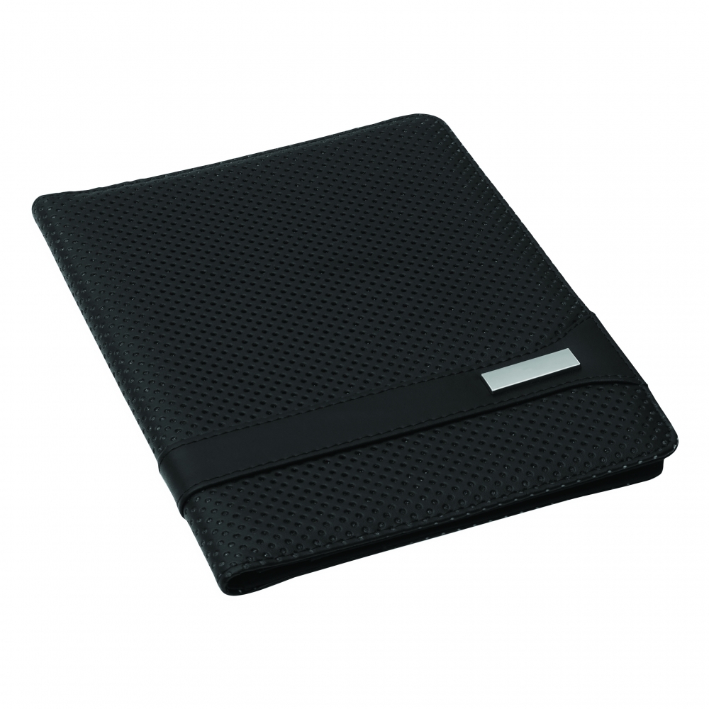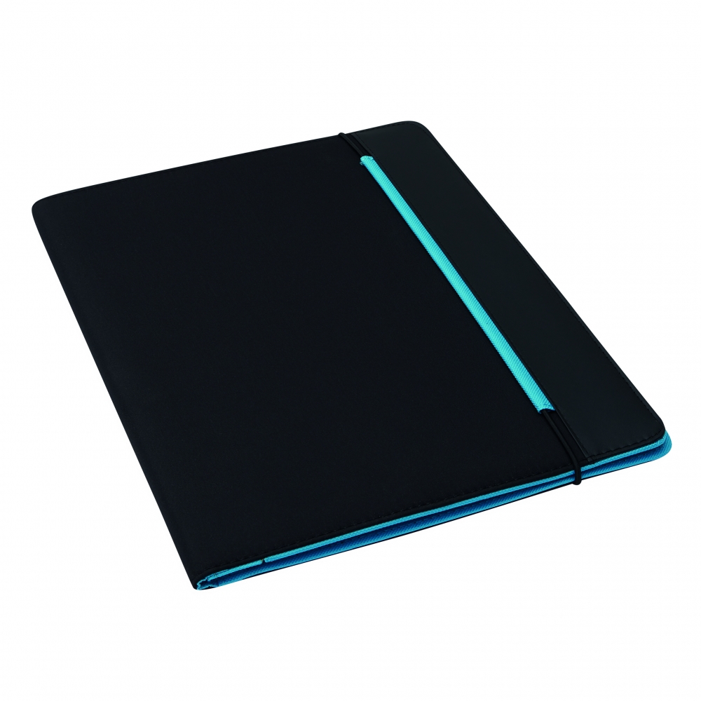 Schreibmappe mit weicher Oberfläche und vier Elastikbändern für jedes Tablet (max. 10,1'), Schlaufe für Kugelschreiber und Taschen für Visitenkarten. Mit 30-seitigem Schreibblock. Schreibblock.