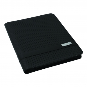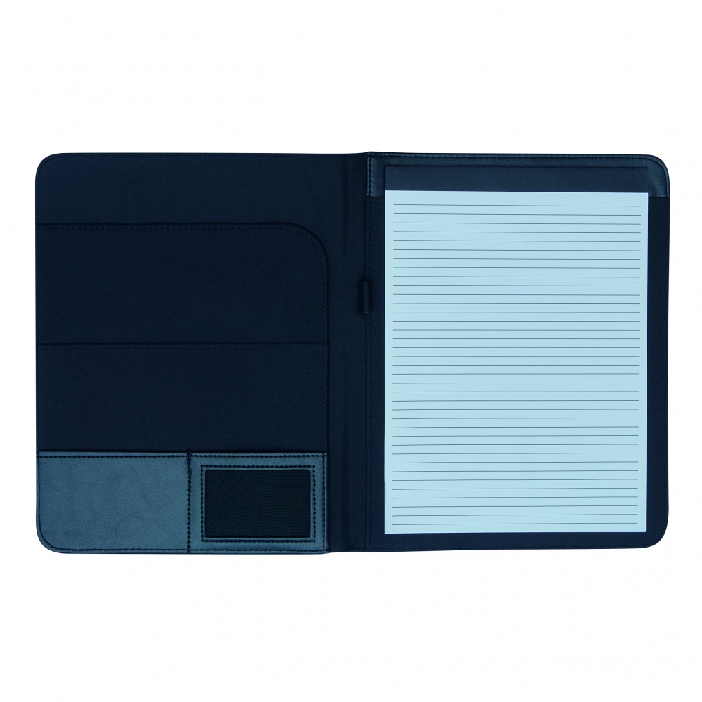 Hochwertige, funktionale Schreibmappe mit großer Veredelungsfläche; Einsteckmöglichkeit für DIN A4-Schreibblock, DIN A5 Block; elastische Laschen für Stifte, USB-Stick etc.