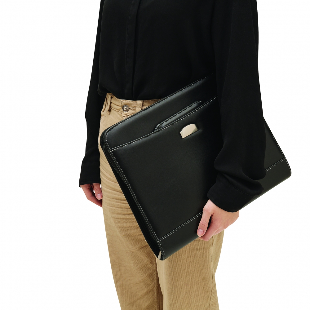 Dokumentenmappe AVANTI RING im DIN-A4-Format: mit Schreibblock, Schlaufe für ein Schreibgerät, diversen Einsteckfächern, Tragegriff und umlaufendem Reißverschluss