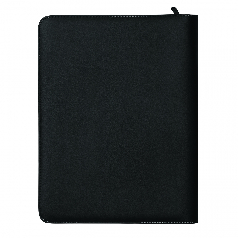 Schreibmappe A4 aus 600D mit Ringbuchablage und Reißverschluss. Diese Mappe hat eine Vordertasche und ein Dokumenten- und Kartenfach. Enthält ein Notizblock mit 40 linierten Seiten (60 g / m²). Kugelschreiber und USB-Stick nicht enthalten. 260 x 340 x 35 mm