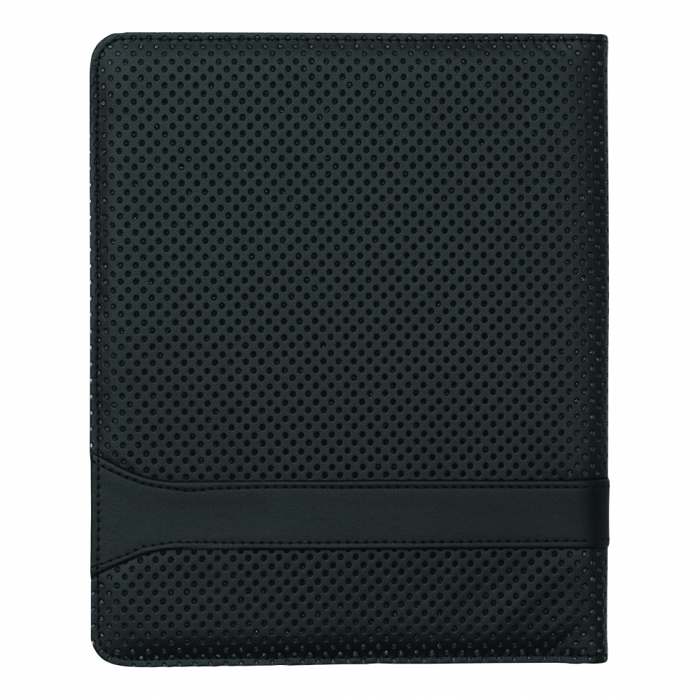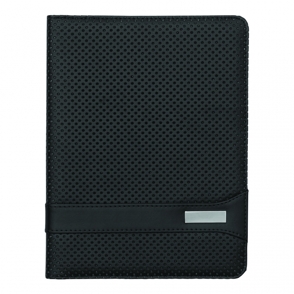 Mini-Tablet-Portfolio HILL DALE TAB im DIN-A5-Format: innen aufklappbarer Tablet-Halter mit elastischen Befestigungsgurten, geeignet für Tablet-PCs (7 Zoll) und iPad® mini, inkl. Schreibblock (liniert), Schlaufe für 1 Schreibgerät – außen in gestanzter Loch-Optik mit Metallplättchen für Ihre Werbeanbringung