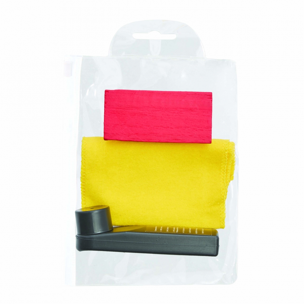 Vielseitiges Schuhputzset aus lederähnlichem Material (PU). Enthält klare Politur, Reiniger, Schuhlöffel, Tuch und Bürste. Wir bringen Ihr Logo auf der Tube an.
