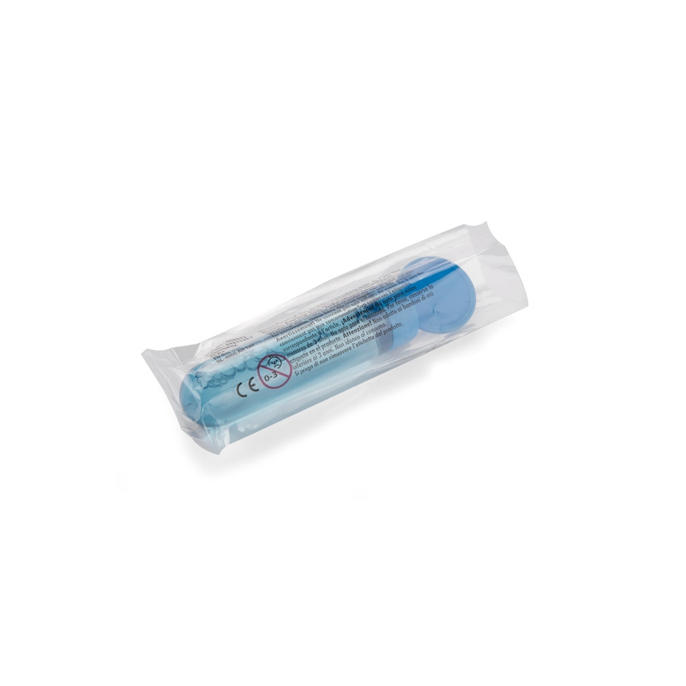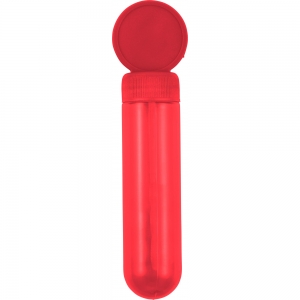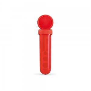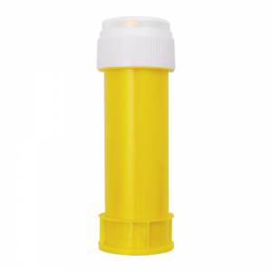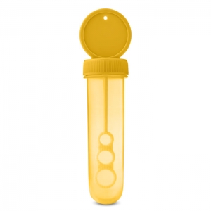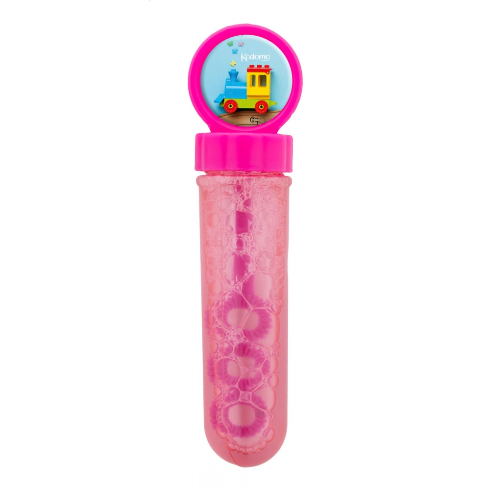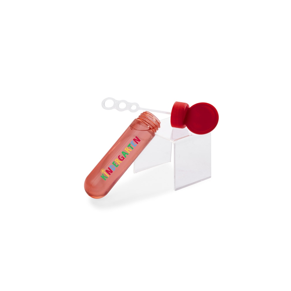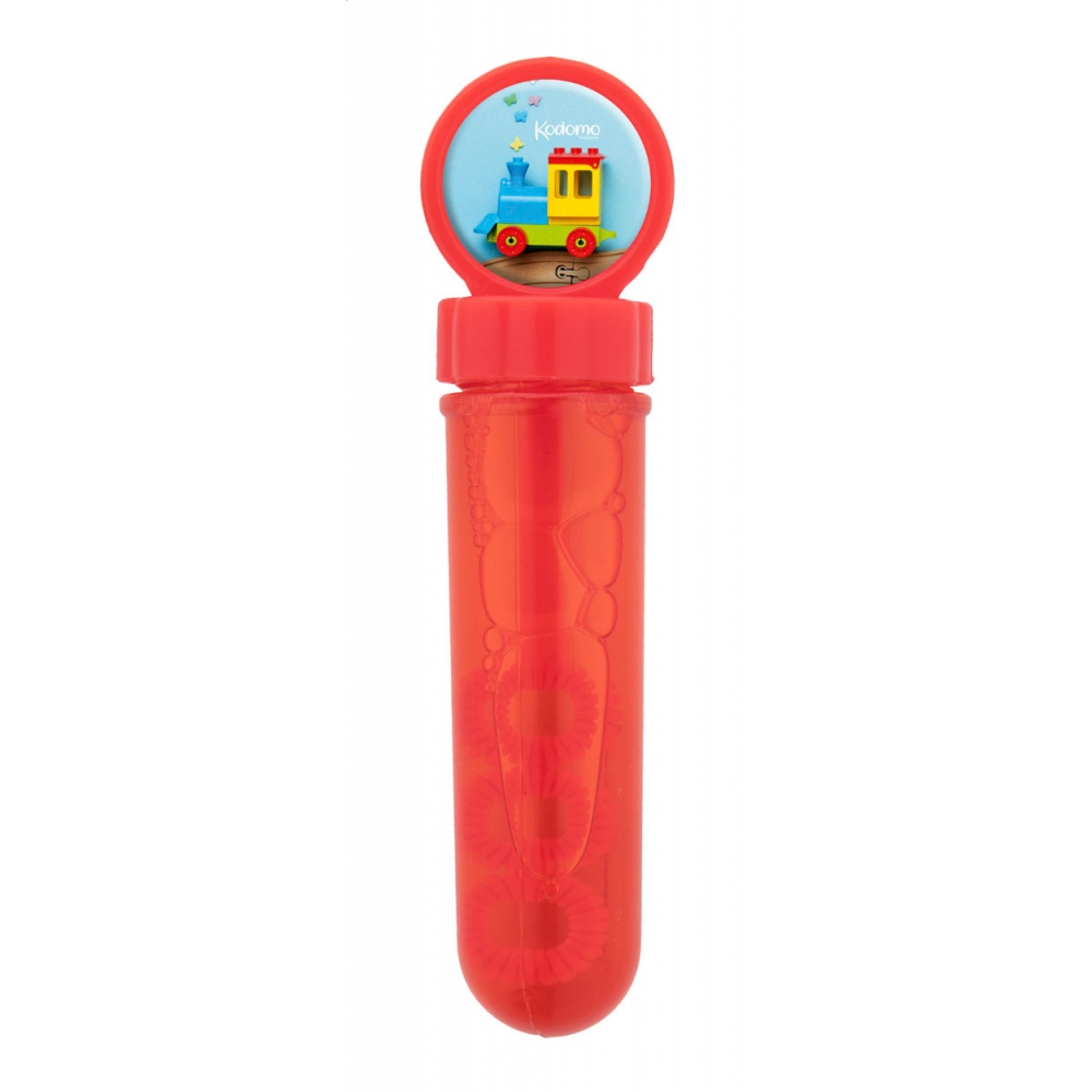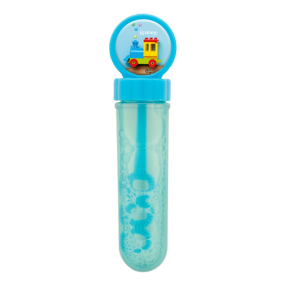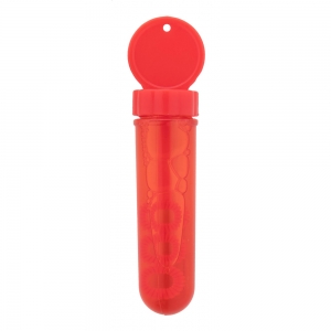 Seifenblasenmaschine mit speziellem Applikator, die Blasen in 3 Größen erzeugt. Flüssigkeit enthalten (30 ml). Mit festfarbigem Deckel und transluzentem Körper.