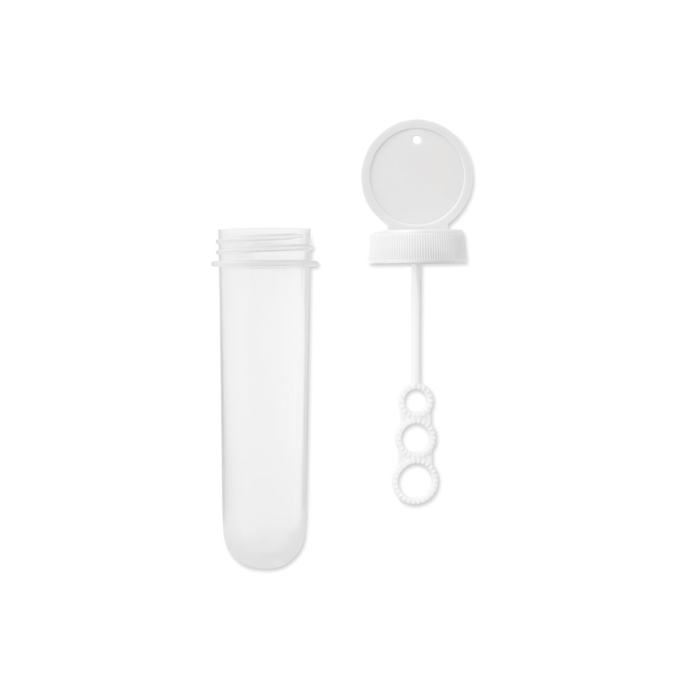 Seifenblasentube aus Kunststoff mit Geduldspiel. Füllmenge: 60 ml (exkl. Seifenblasen-Flüssigkeit).