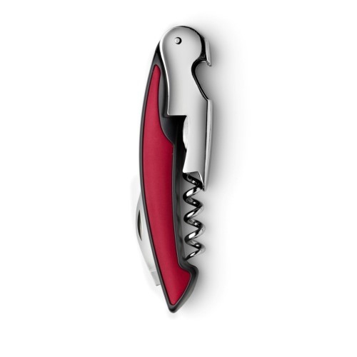 Kellnermesser aus Edelstahl mit farbigem Körper mit Folienschneider und Flaschenöffner. Durch die zweistufige Konstruktion lässt sich der Korken leicht aus der Flasche herausziehen.