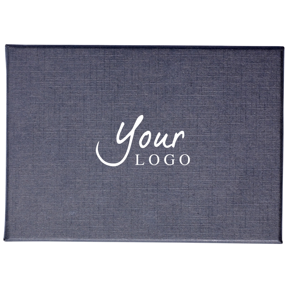 Stilvolle Weinbox ausgestattet mit einem Kellnermesser, einem Tropfring, einem Flaschenverschluss aus Metall sowie einem Ausgießer mit Verschluss. Ihre Werbung wird auf dem Deckel unten rechts vorzugsweise in Gold angebracht.