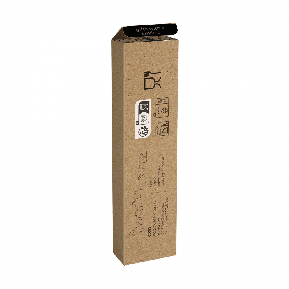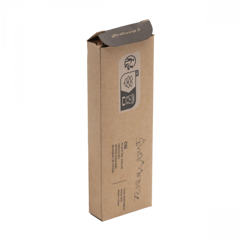 Das hochwertige Kellnermesser RE98-CORXX wurde aus recyceltem Edelstahl hergestellt und verfügt über einen robusten und angenehmen Holzgriff. Es kombiniert drei Werkzeuge in einem: einen Korkenzieher, einen Flaschenöffner und einen Folienschneider mit Sägeschliff. Dank seiner 2-stufigen Doppelhub-Hebelmechanik kann jeder Korken sanft und mühelos von jedem Flaschentyp entfernt werden. Alle Werkzeuge lassen sich mühelos zusammenklappen und platzsparend aufbewahren. Die Werbebotschaften können per edler Lasergravur auf dem Edelstahl präsentiert werden. Der Artikel wird in einer hochwertigen Schuber-Verpackung aus Pappe geliefert.