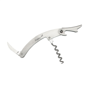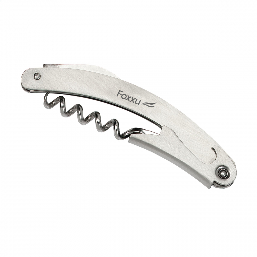Ausklappbares Edelstahl-Kellnermesser mit 3 Funktionen: Korkenzieher, Flaschenöffner und Folienschneider.