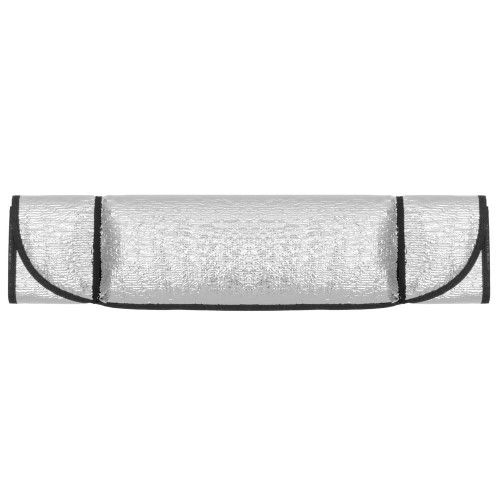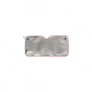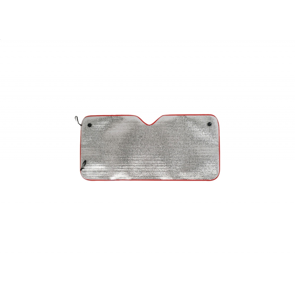 Sonnenblende für die Front- oder Heckscheibe mit Aluminium-Beschichtung (55 g, 1,8 mm stark) und Saugnäpfen.
