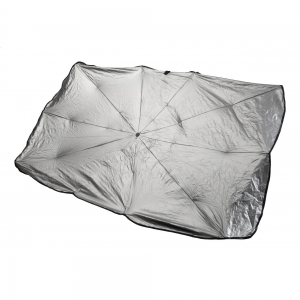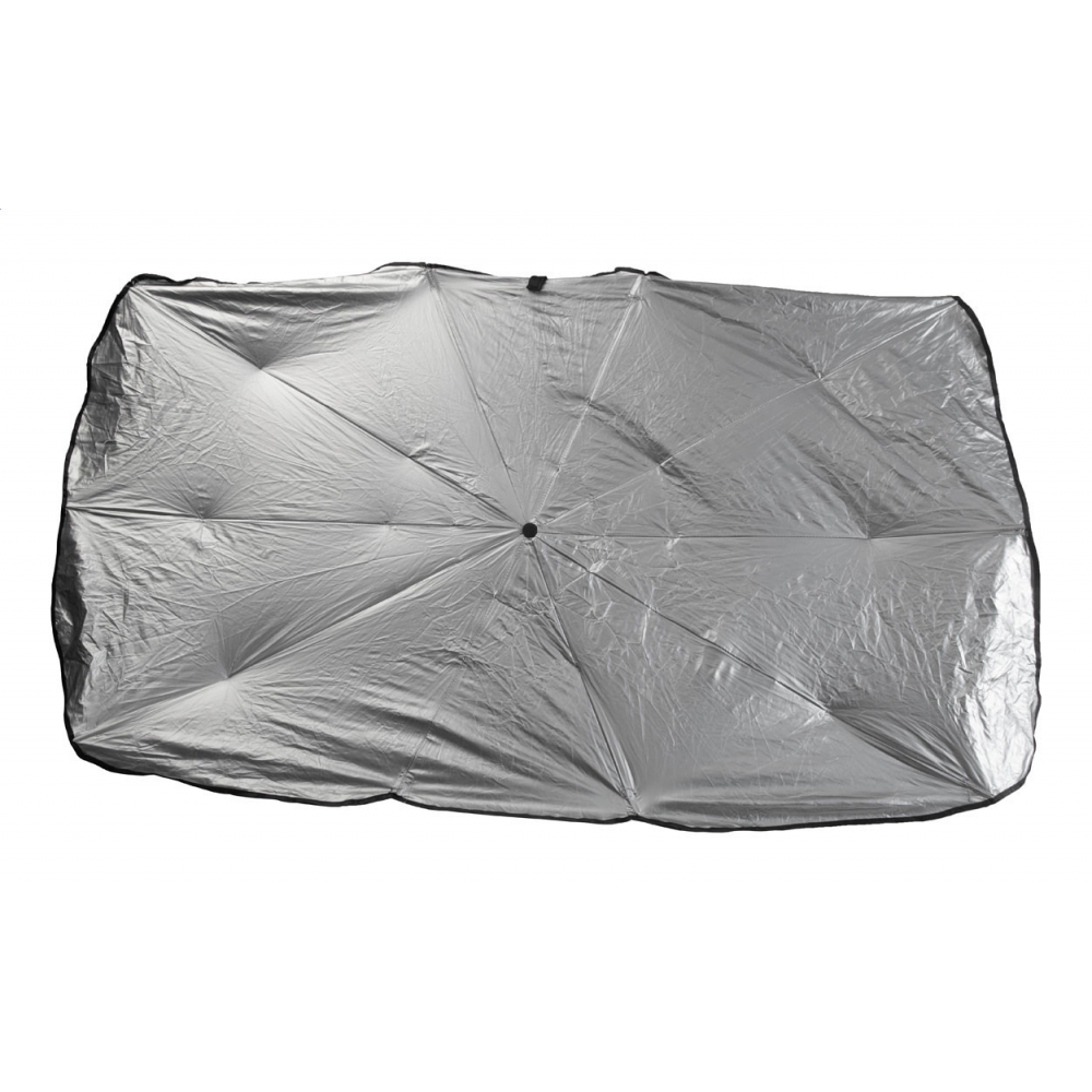 Sonnenblende für Frontscheibe mit Aluminiumbeschichtung (180 g, 1,8 mm stark) und Saugnäpfen.