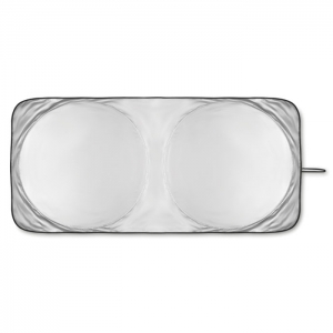 Faltbarer Sonnenblendenschirm für die Windschutzscheibe mit Metallrahmen, einzeln in Poyester-Beutel.
