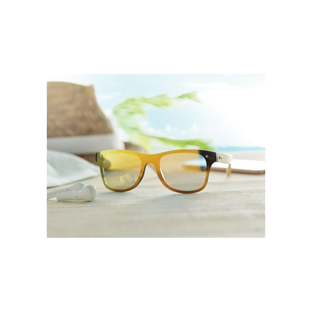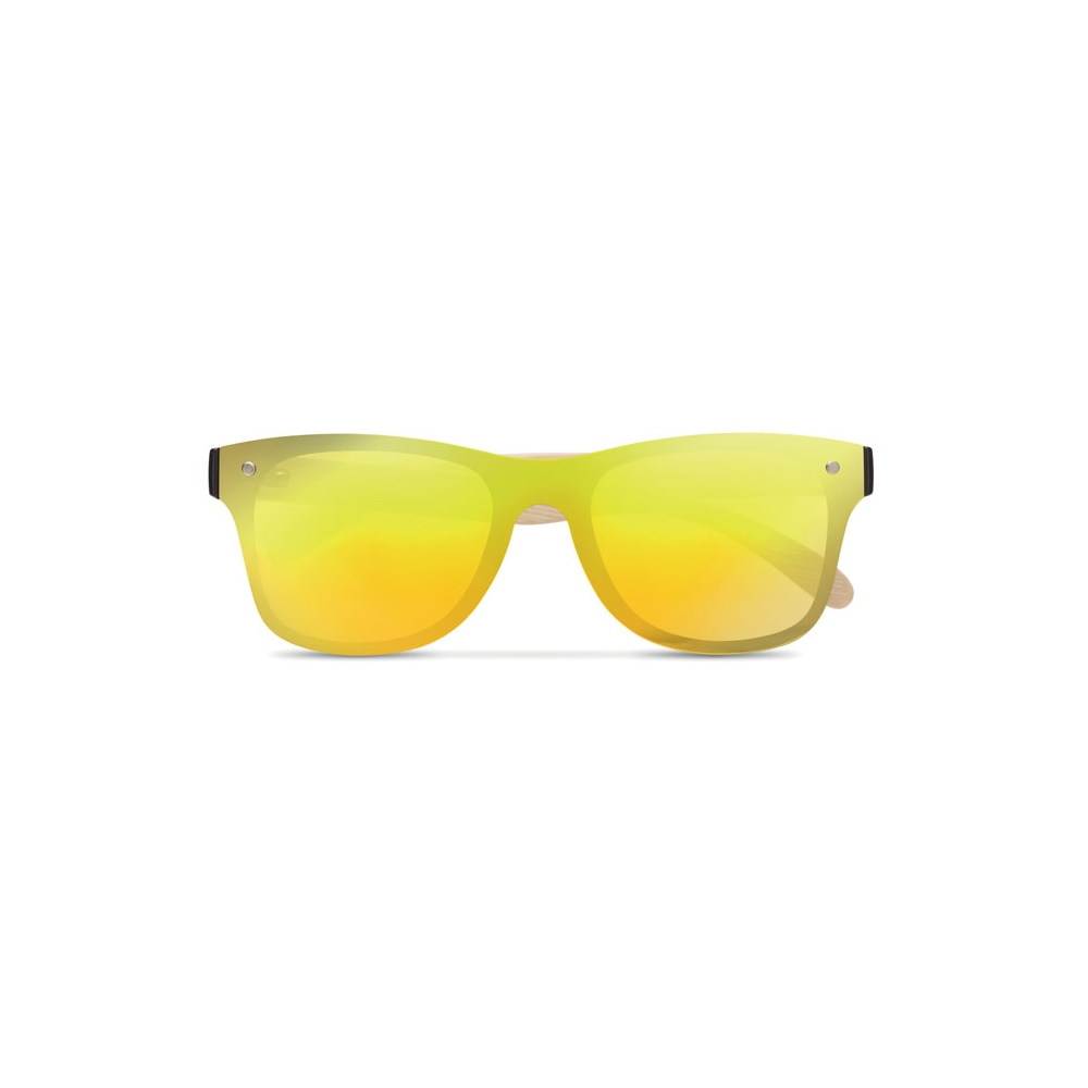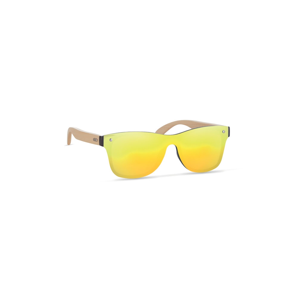 Artikel-Nr: OCBMO9863-08Sonnenbrille mit Bügeln aus Bambus. Komplett verspiegelte Gläser. UV400-Schutz. Bambus ist ein natürliches Produkt, es kann daher zu leichten Abweichungen in Farbe, Dekor und Maßen kommen.