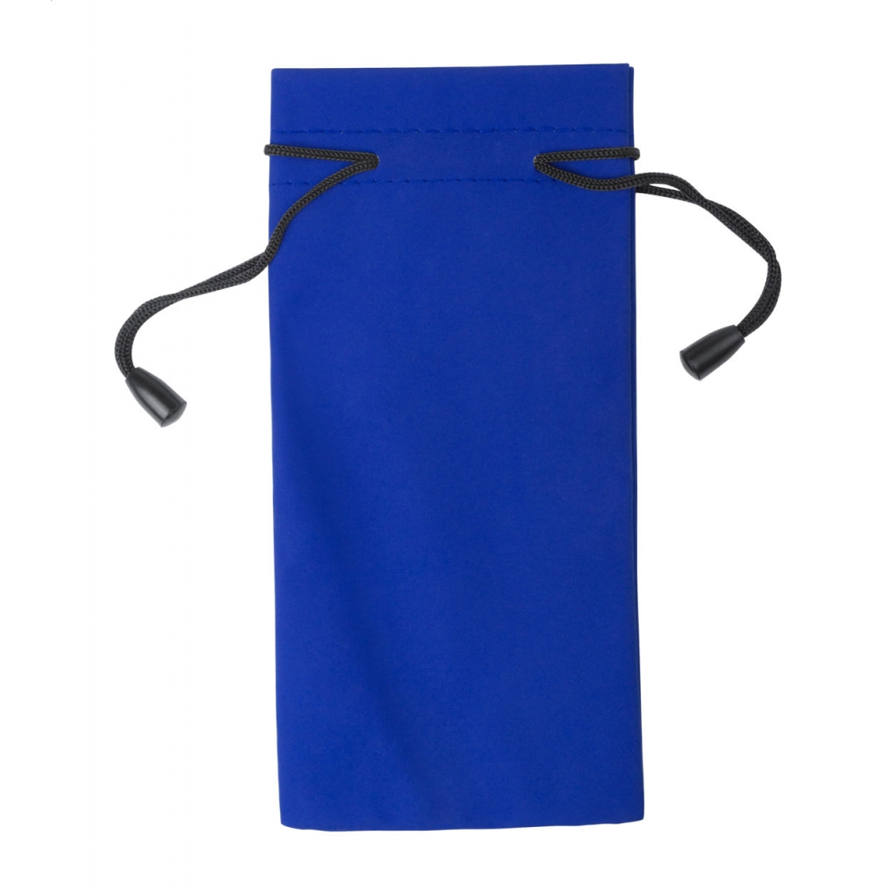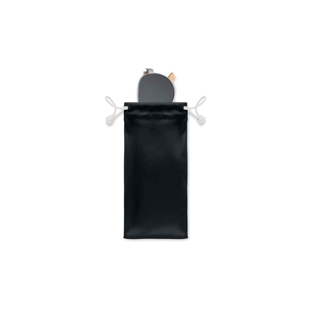 Sonnenbrillenetui mit Kordelzug aus RPET-Mikrofaser.