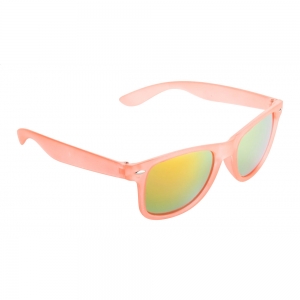 Sonnenbrille mit UV-400-Schutz mit klassischem Design und halbtransparentem Rahmen in fröhlichen Farben sowie farblich passenden, verspiegelten Gläsern.